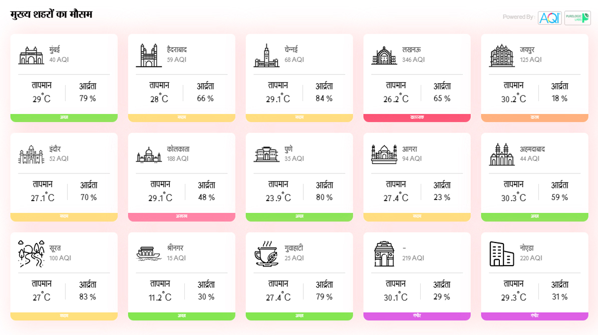 मुख्य शहरों का मौसम सारांश (AQI के अनुसार)