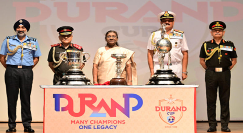 “ शुक्रवार को राष्ट्रपति भवन के सांस्कृतिक केंद्र में आयोजित एक भव्य समारोह में डूरंड कप 2025 की ट्रॉफी का अनावरण किया। इस अवसर पर उन्होंने खेलों की महत्ता पर जोर देते हुए कहा कि खेलों से अनुशासन, दृढ़ संकल्प और टीम भावना को बढ़ावा मिलता है, साथ ही यह लोगों, क्षेत्रों और देशों को जोड़ने की अनूठी शक्ति रखते हैं।“